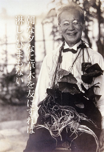 ―― ひたすら愛する草木のために・・・。自らが選んだ道に絶対的な自信を持ち、研究以外の事はすべて些末な事と、他人からの中傷や非難や経済さえも何処吹く風。そして行動や言動に功利的なものを含まず、なにより私心をもっていなかったからこそ多くの理解者に恵まれたのではないでしょうか。彼は自著のなかで[草木愛]という言葉を使っています。