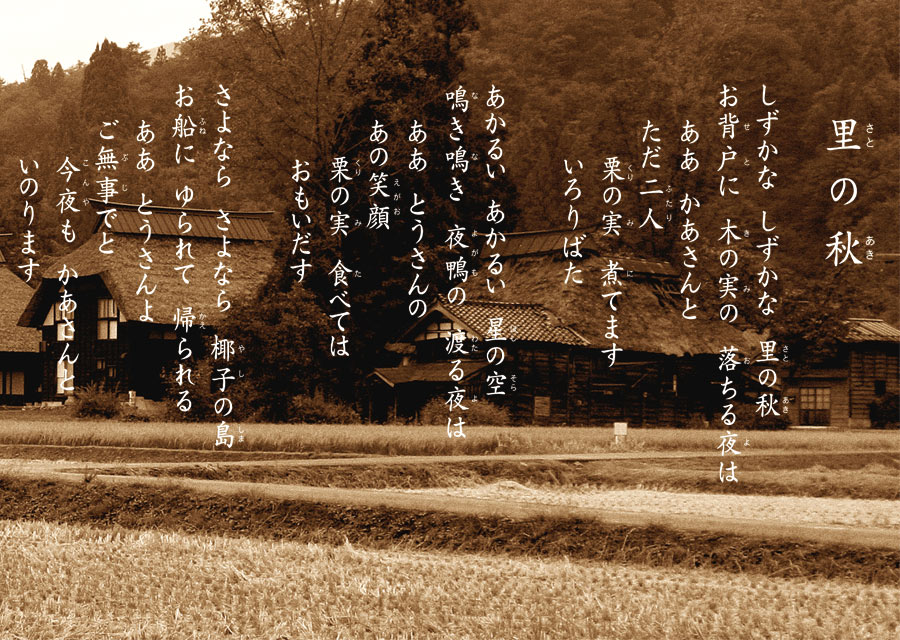 こうして作詩されてから4年の間埋もれていた作品が姿を変えて世に出ることになりました。1回きりの番組のために生まれた『里の秋』。その反響の大きさから、翌年1月15日から放送されたラジオ番組【復員便り】の中で繰り返し歌われることになります。【復員便り】は昭和22年まで続きますが、同じ年の7月から始まった【尋ね人の時間】(〜昭和37年)へ、その役割を徐々に引き継いでいきます。